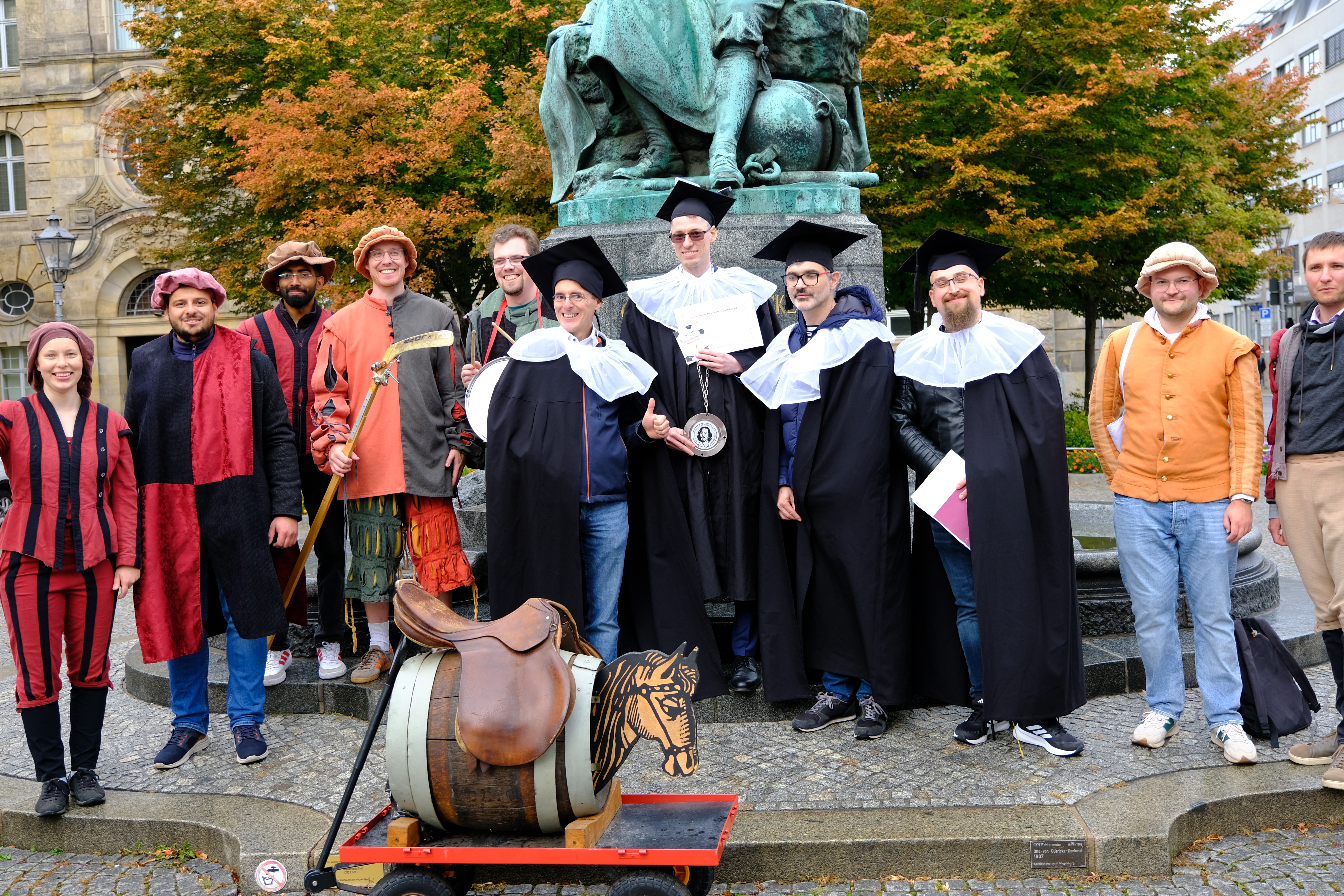 After the successful defense in front of the doctoral committee with the three reviewers of his thesis, Frank Ortmeier, Thomas Thüm, and Alexander Serebrenik, we visited, in a traditional ceremony, the monument of the university's eponym, Otto von Guericke.